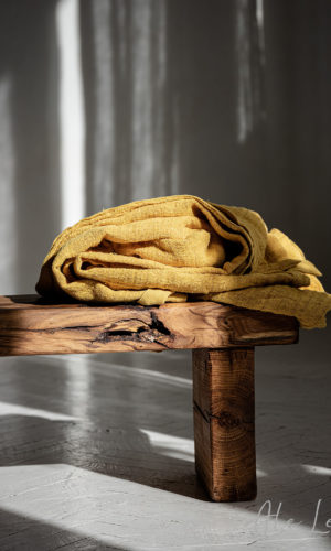 The combination of rarely woven linen thread with thicker linen, gives a unique, slightly oriental effect. The bedspread is both delicate, ethereal, and practical. It combines these opposites with great grace, while filling the interior with solar energy.
